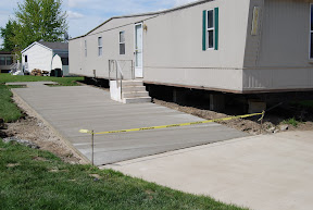Angel came over to the house today around 4pm saying Tina's Concrete is done! Wow....yesterday there weren't any forms down and today it's done along with a few other Mobil Homes. I guess if you have a large enough crew alot of concrete can be put down in a short time.
